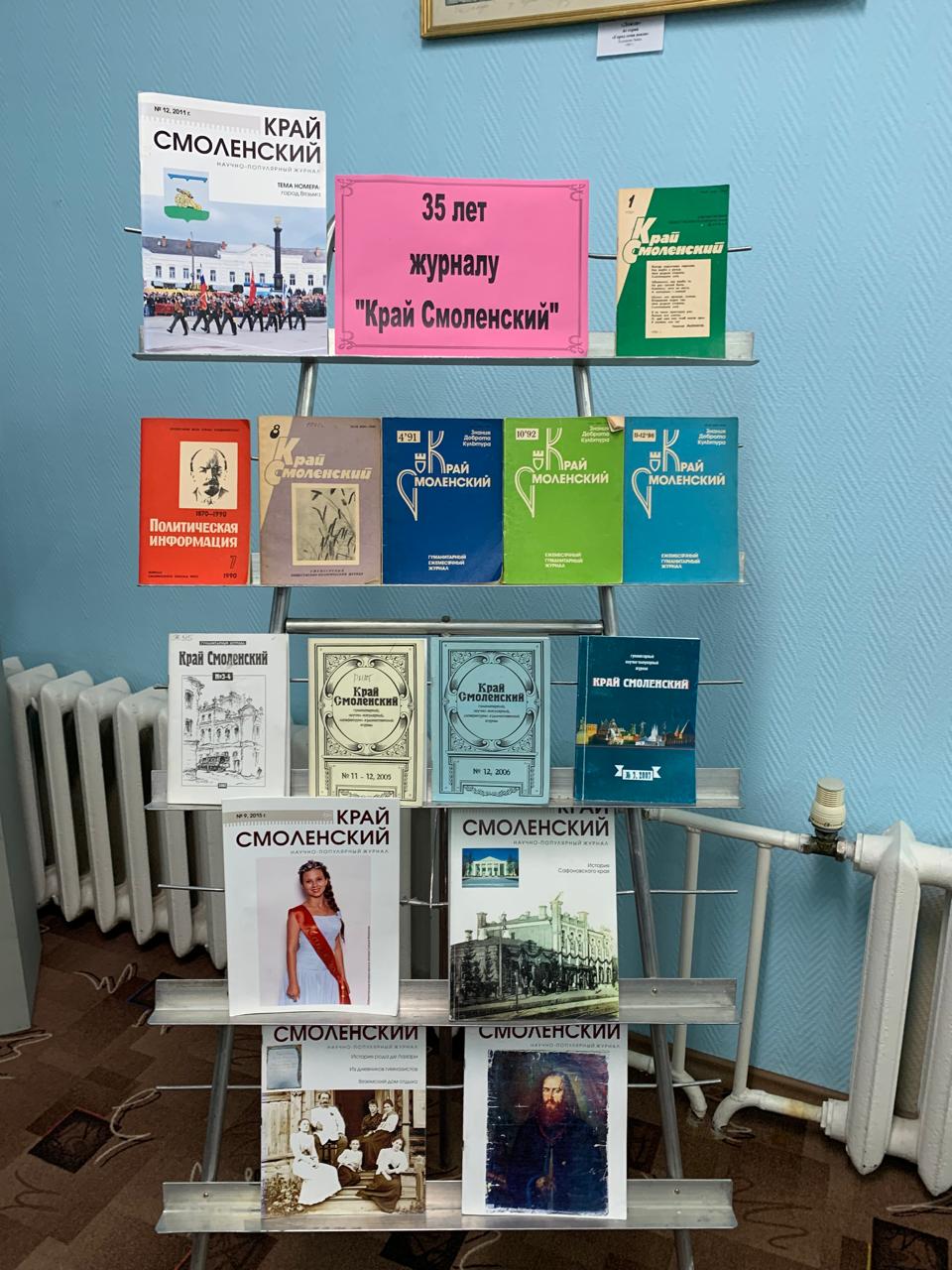 С сообщением «35 лет журналу «Край Смоленский» выступила главный библиограф по информационному краеведению Валентина Александровна Афиногенова. Она кратко рассказала историю издания и представила выставку номеров журнала со статьями вяземских авторов. Обзор журнала «Край Смоленский» № 4 за этот год сделал член клуба Роман Сергеевич Шаповалов, обратив внимание на публикацию Натальи Георгиевны Гурской о традиции вяземской свадьбы. Участники заседания говорили о востребованности журнала; читать его могут посетители библиотеки, так как подписка оформлена одним из членов клуба. Было решено направить поздравительный адрес - благодарственное письмо редакции в связи с 35-летием издания.